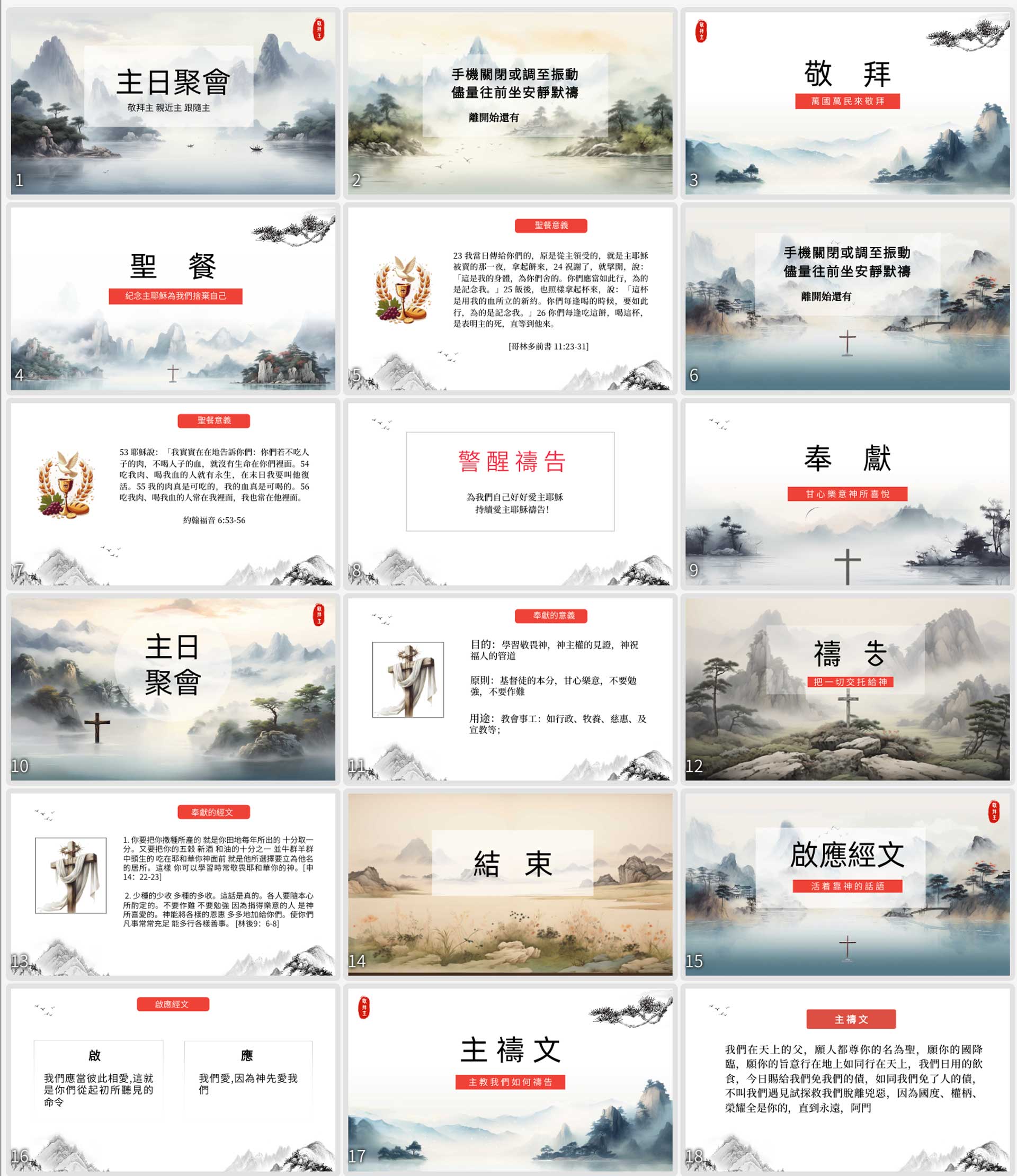 中國水墨山水,本次多媒體主日投影的設計以灰色為主題;